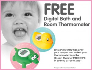 The Deal Says: Print your coupon and collect your FREE Digital Bath and Room Thermometer from the Oricom Stand at PBCE Sydney 23-25th of May. Don’t forget to SHARE this offer with all your friends!