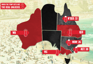 Join Meatwave to score free burgers and sweet summer deals. Each Monday between Jan 20 and Feb 16, we’ll be setting weekly target temperatures on our Facebook and Twitter feeds. When your local temp hits the week’s target, head into your local restaurant with your Meatwave card for free burgers and other great stuff.