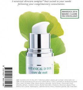 Print and present the voucher at your nearest Sisley counter at David Jones. The Samples include 2ml Botanical D-Tox Sample and 3 essential skincare samples. [That is 4 samples together!] Offer available until 30 June 2014. Maximum of four samples per customer. While stocks last. Offer can be presented by print out or mobile device.