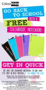The Free Sample Deal Says: Go back to school with a FREE ColourHide Notebook. Get in quick, we have 200 to give away and it’s first in best dressed! CLICK HERE