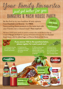 Register here for a free Your Family Favourites Bangers & Mash party pack