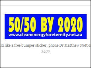 If you would like a free bumper sticker, phone Dr Matthew Nott on 02 6492 3277