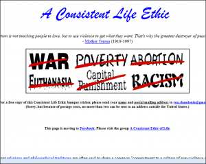 For a free copy of this Consistent Life Ethic bumper sticker, please send your name and postal mailing address to [email protected].